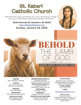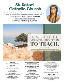 | St. Kateri 16101 Rotunda Dr, Dearborn, MI 48120 Phone: (313) 336-3227 | 9:00 am 11:00 am | X | 6:40 pm | 9:00 am | 9:00 am | 9:00 am | 4:00 pm |