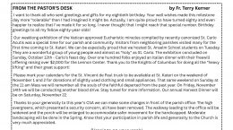FROM THE PASTOR’S DESK by Fr. Terry Kerner I want to thank all who sent greetings and gifts for my eightieth birthday. Your well wishes made this milestone day more “tolerable” than I had...