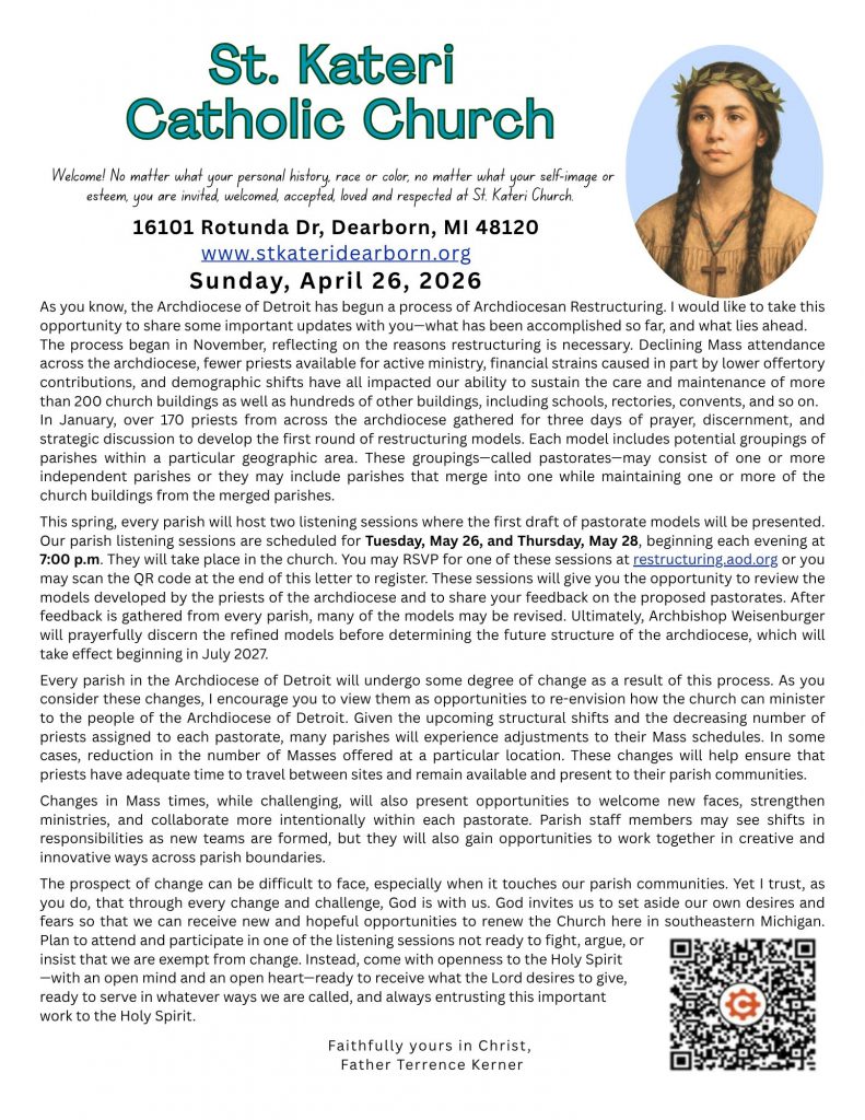 As you know, the Archdiocese of Detroit has begun a process of Archdiocesan Restructuring. I would like to take this opportunity to share some important updates with you—what has been accomplished so far, and what lies ahead.