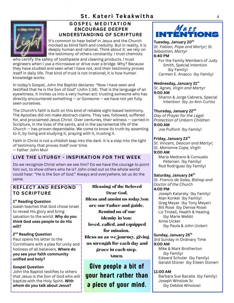 Jan 18, 2026 – The Second Sunday in Ordinary Time