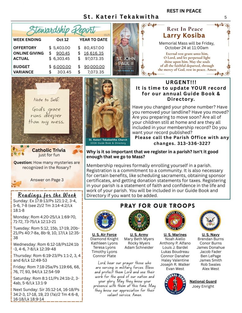 Oct 19, 2025 – Twenty-Ninth Sunday in Ordinary Time