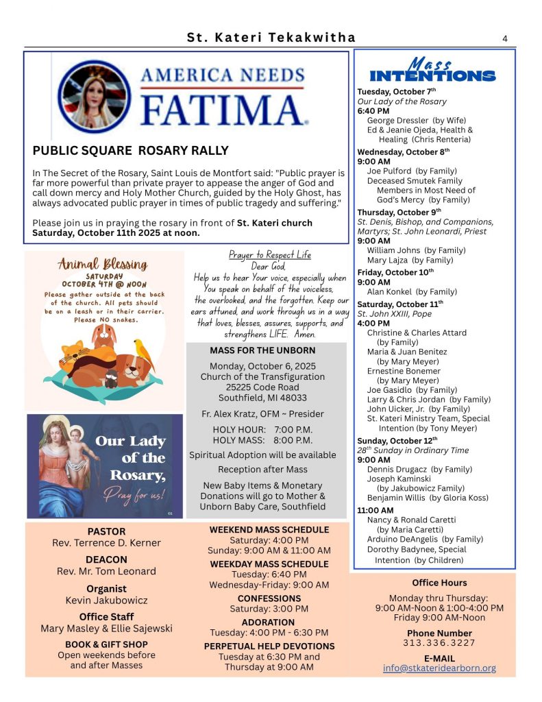 FROM THE PASTOR’S DESK By Fr. Terry Kerner