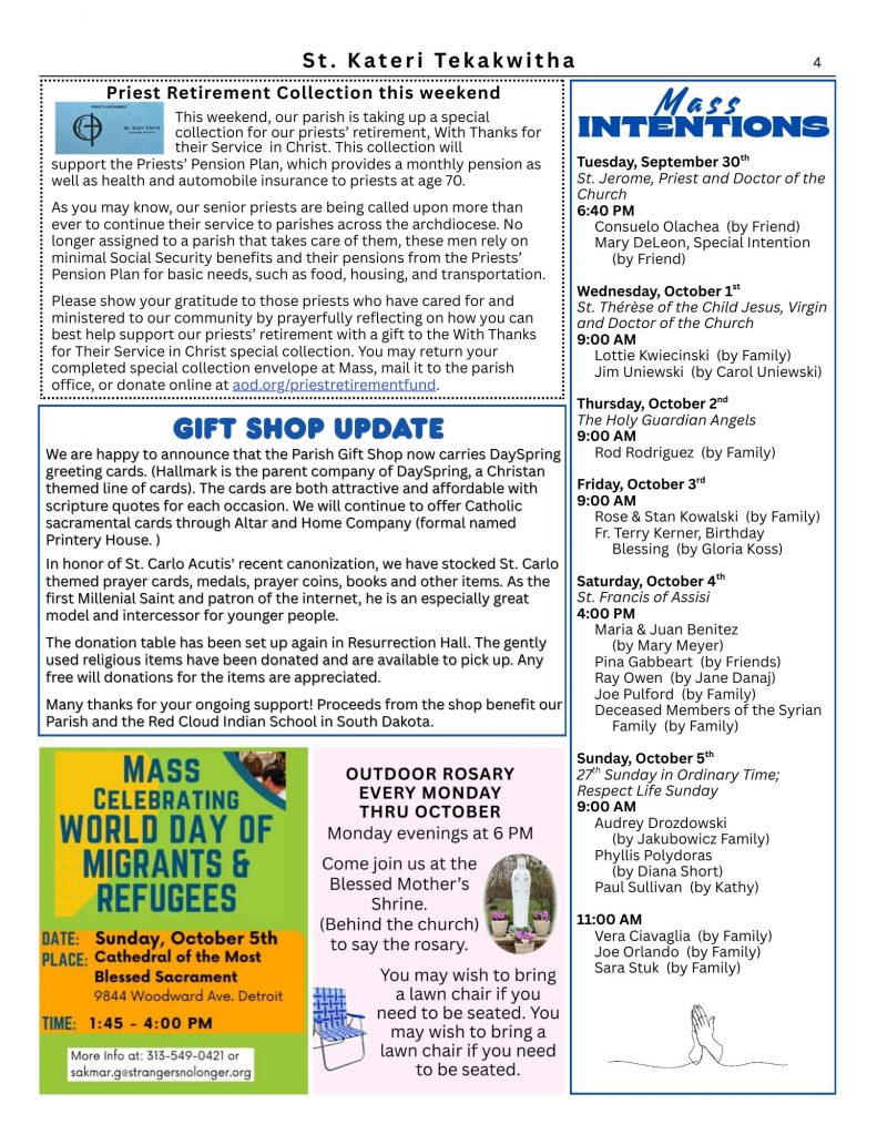 Sunday, Sept 28, 2025 – Twenty-Sixth Sunday in Ordinary Time